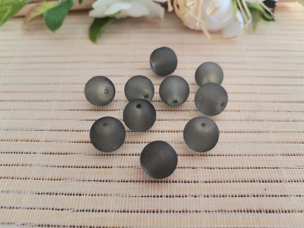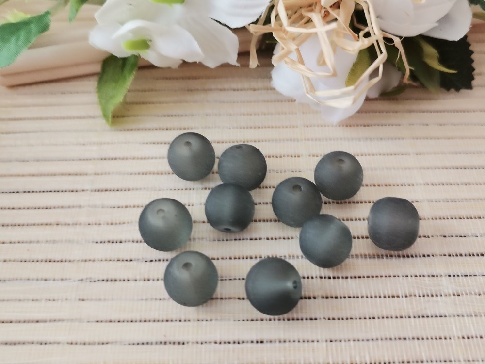 10 Perles en verre givré 10 mm grise