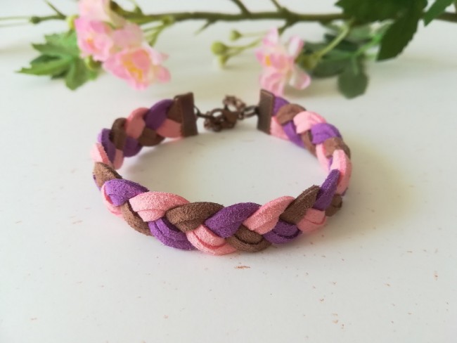 * Détail : bracelet avec suédine aspect daim fini avec fermoir mousqueton et chaînette d'extension
