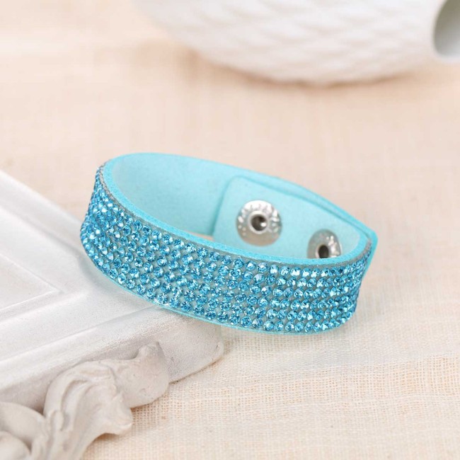* Détail : bracelet sur cordon suédine bleue avec strass , fermeture facile grâce à 2 boutons pression