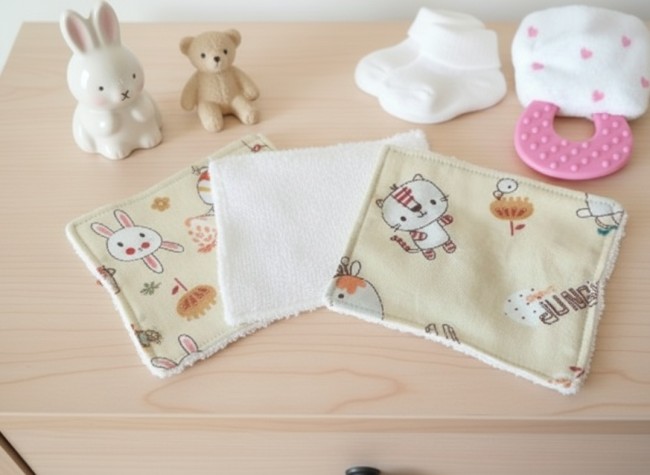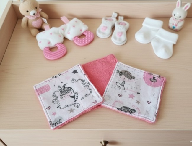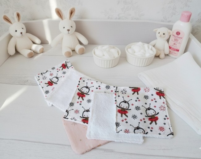 Un peu de douceur pour le change de bébé avec cette jolie petite boite de de 6 lingettes lavables