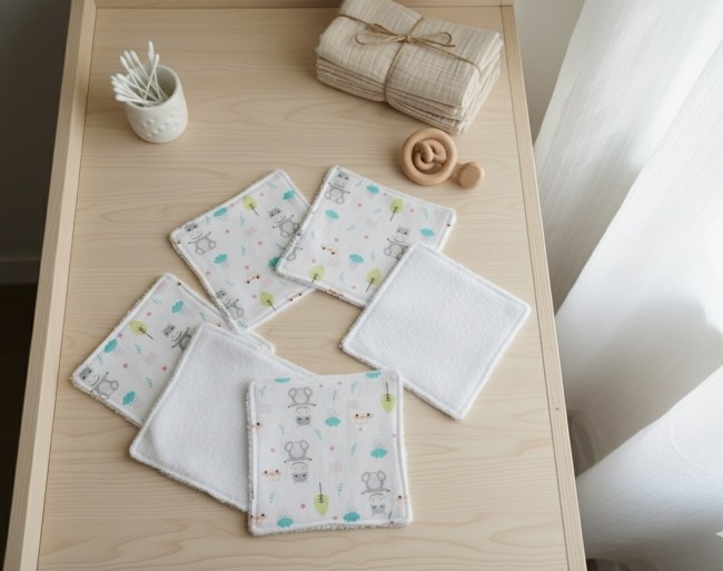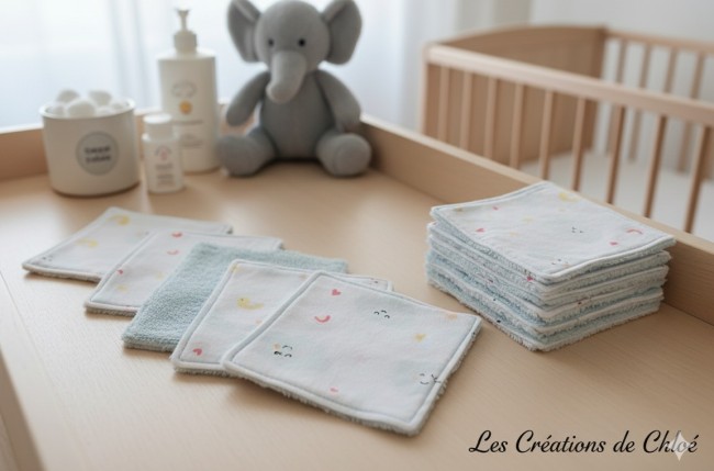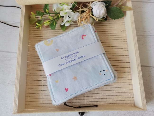 Un peu de douceur pour le change de bébé avec ce lot de 6 lingettes lavables