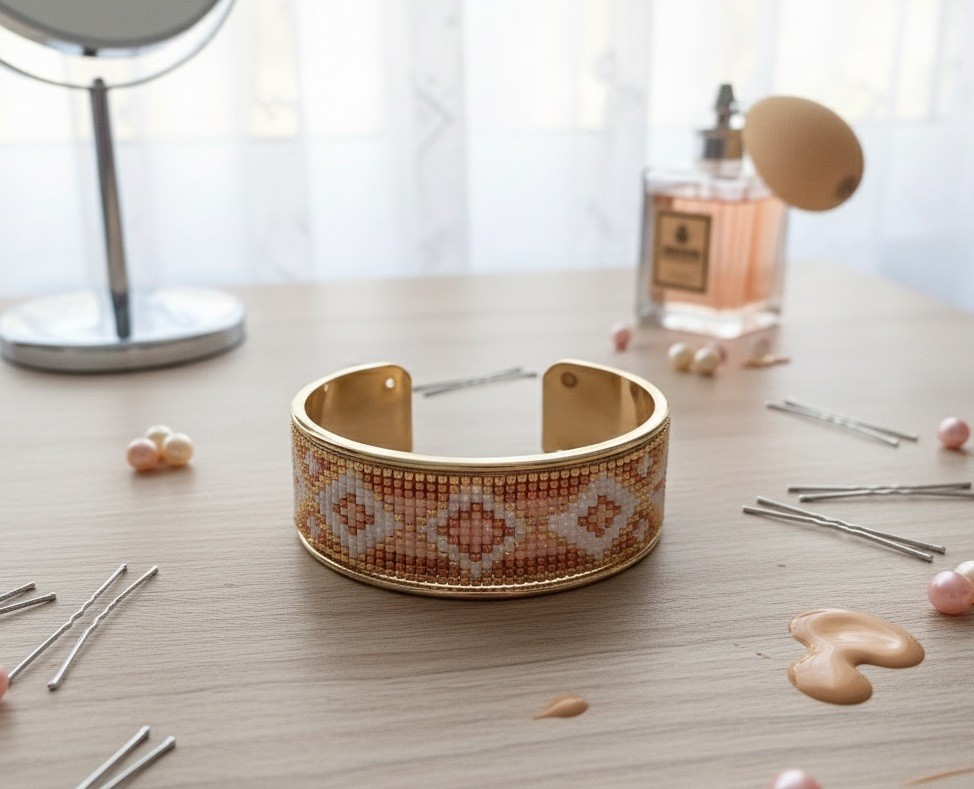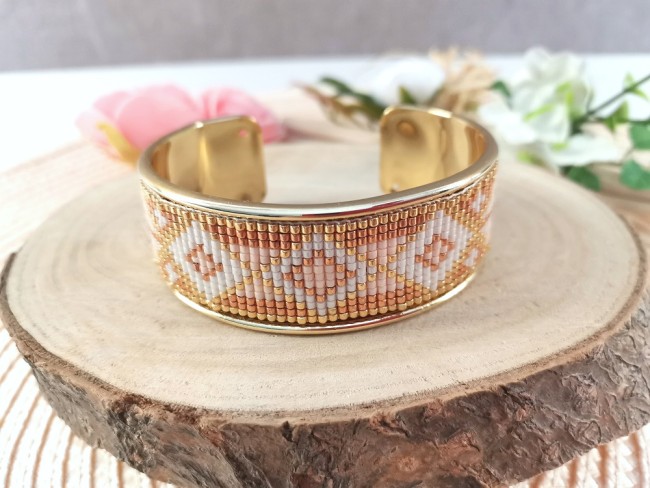 Bracelet manchette tissé en perles miyuki et collé sur un support bracelet jonc réglable.