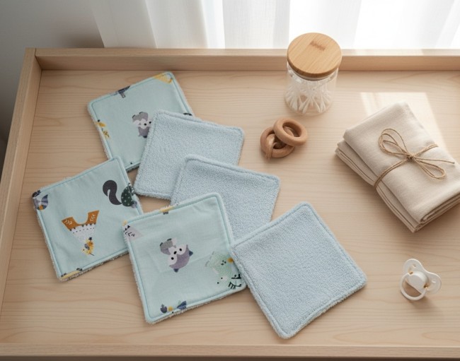 Un peu de douceur pour le change de bébé avec ce lot de 6 lingettes lavables
