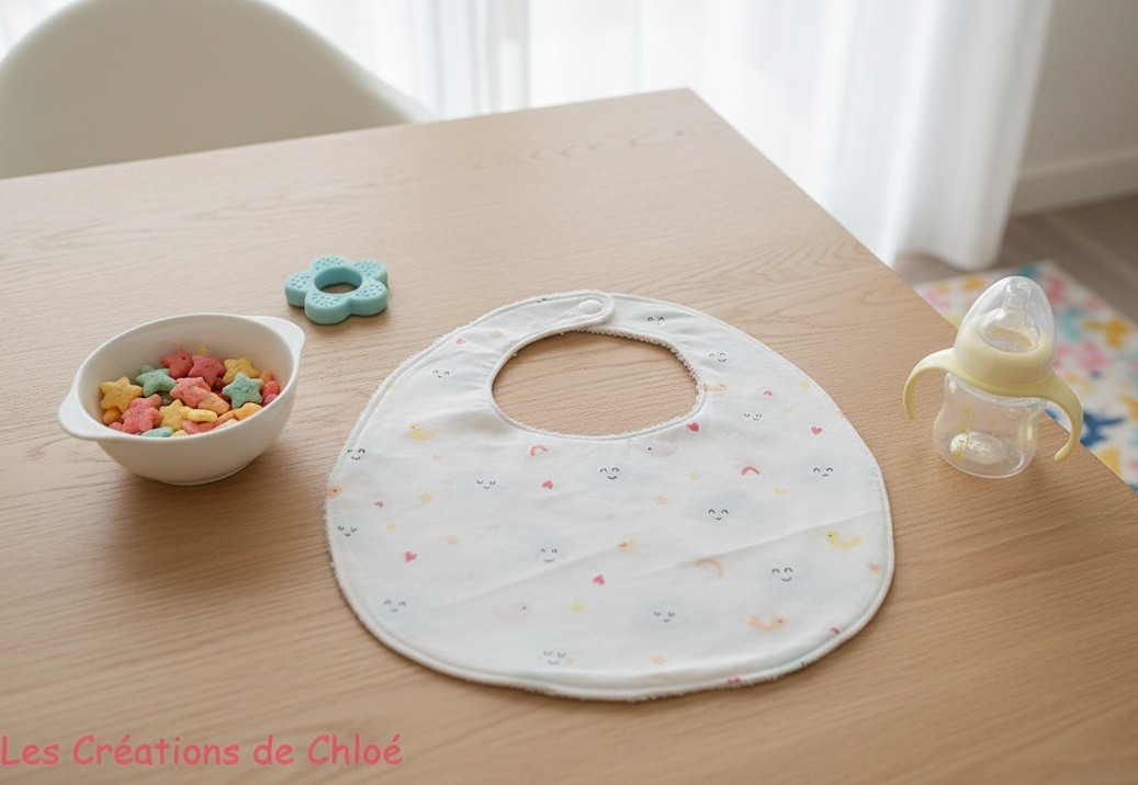 Petit bavoir idéal pour les premiers repas de bébé de 0 à 12 mois.