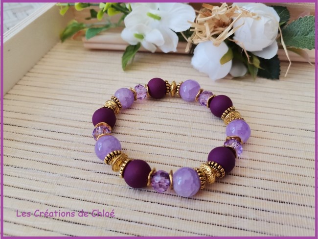 5 perles en verre en verre effet catouchouc violette 10 mm