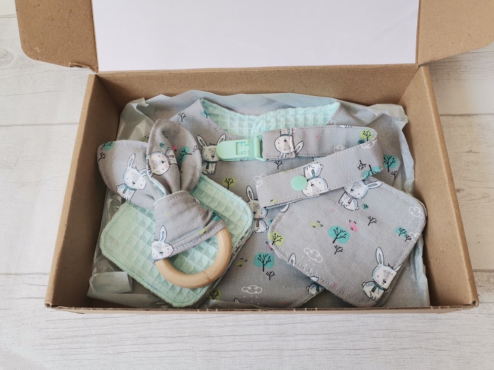 Coffret naissance/box naissance 6 lingettes bleu ciel/lapins