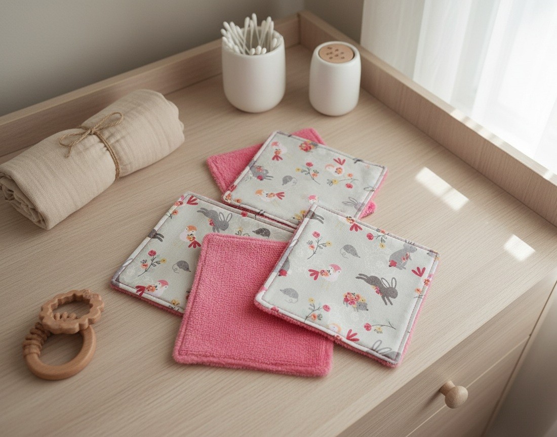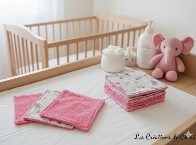 Un peu de douceur pour le change de bébé avec ce lot de 6 lingettes lavables