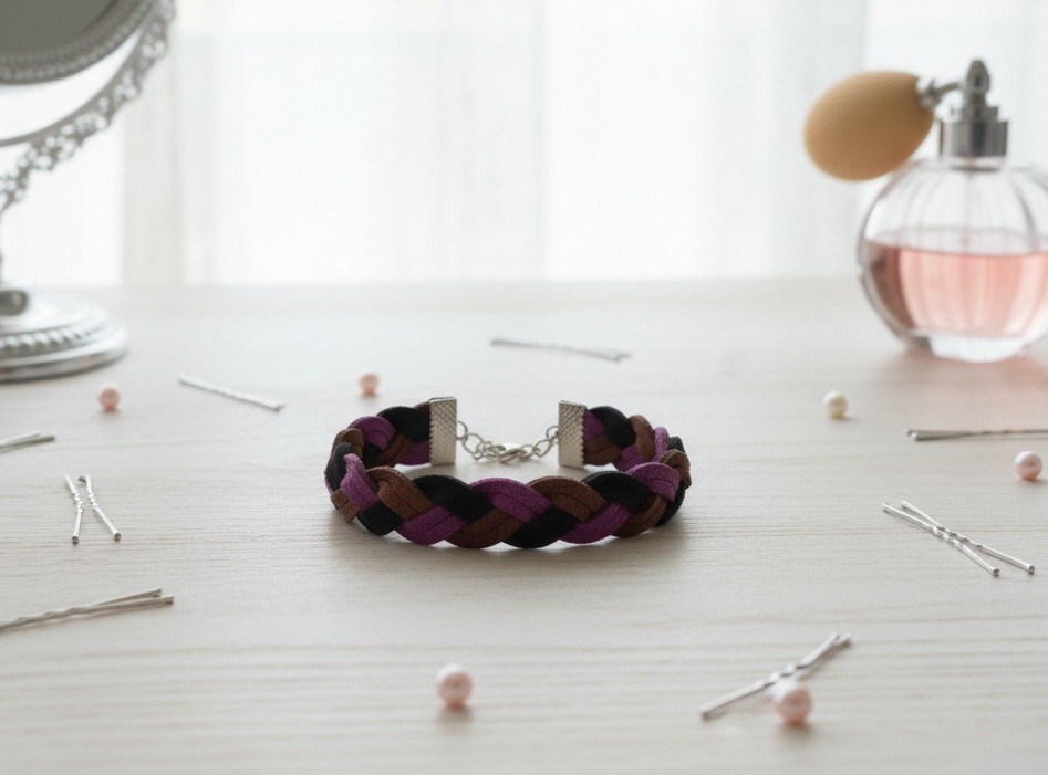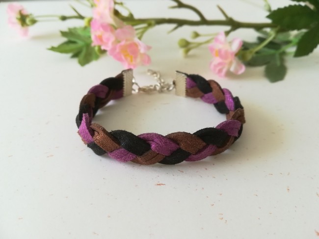 * Détail : bracelet avec suédine aspect daim fini avec fermoir mousqueton et chaînette d'extension