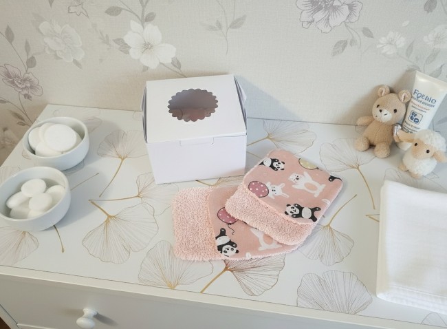 Un peu de douceur pour le change de bébé avec ce lot de de 10 lingettes lavables dans leur boite cadeau
