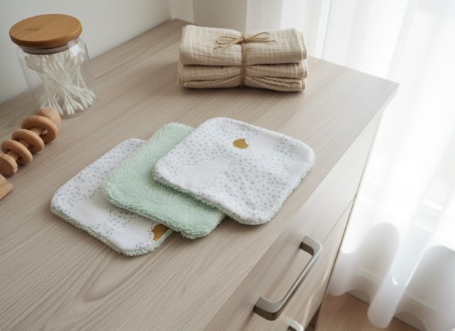 Un peu de douceur pour le change de bébé avec cette jolie boite de 9 lingettes lavables