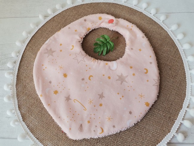 Fait avec du tissus coton certifié Oeko-Tex imprimé étoiles et doublé avec du tissus coton peigné de couleur orange saumon