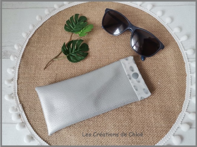 Étui pour lunette simili cuir gris argenté et doublé en tissus coton certifié Oeko-Tex imprimé