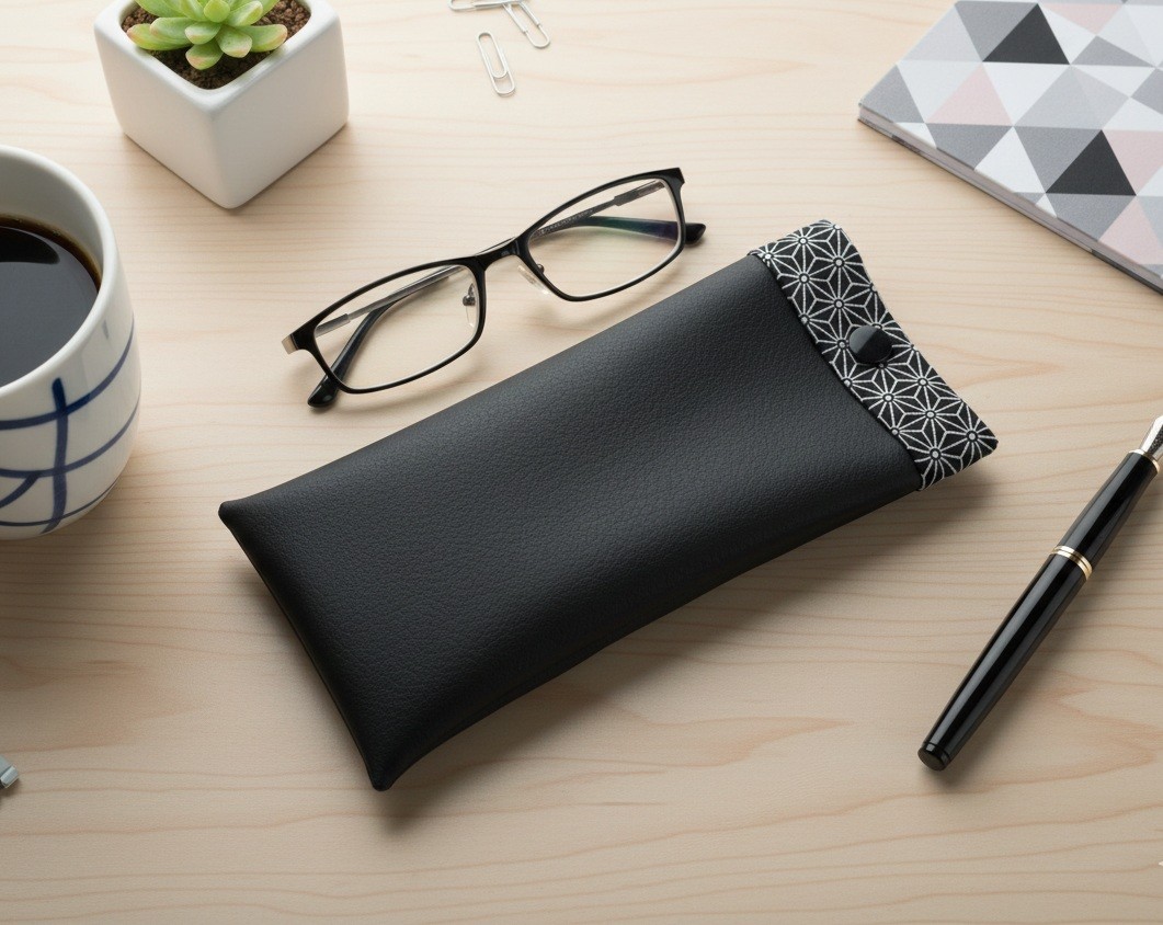 Étui pour lunette simili cuir noir et doublé en tissus coton certifié Oeko-Tex imprimé