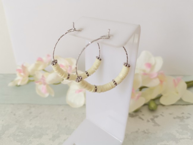 kit boucles d'oreilles créoles et perles Heishi très facile à réaliser, ne nécessite aucune pince