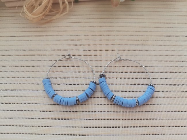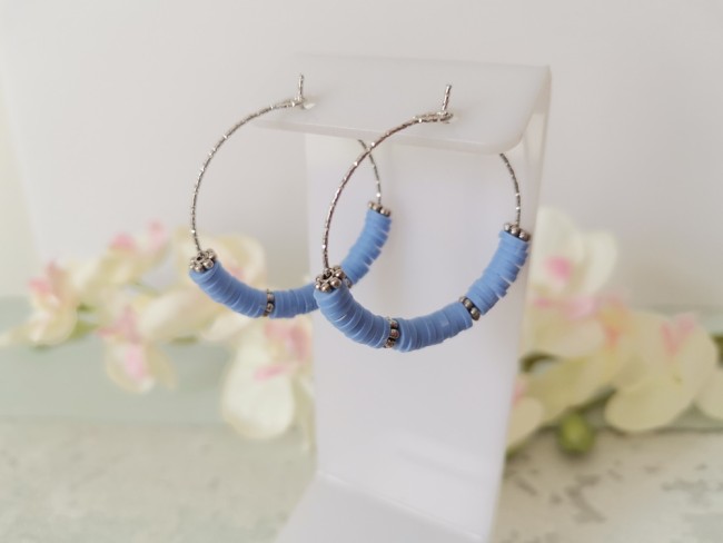 kit boucles d'oreilles créoles et perles Heishi très facile à réaliser, ne nécessite aucune pince