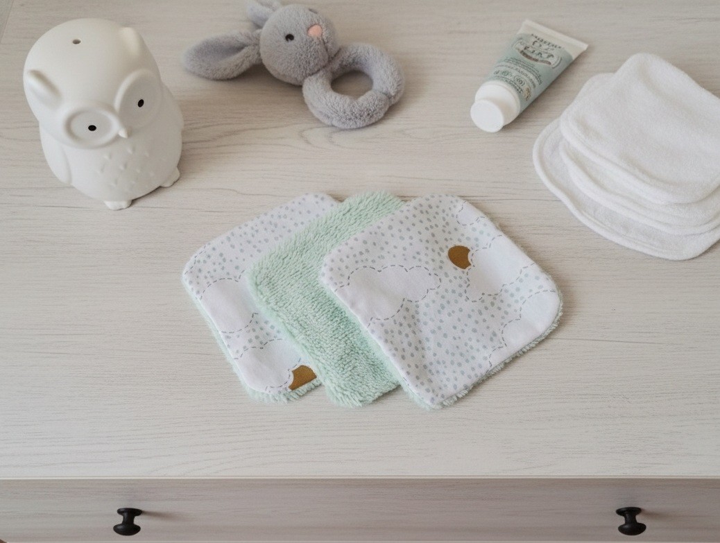 Un peu de douceur pour le change de bébé avec ce lot de 6 lingettes lavables