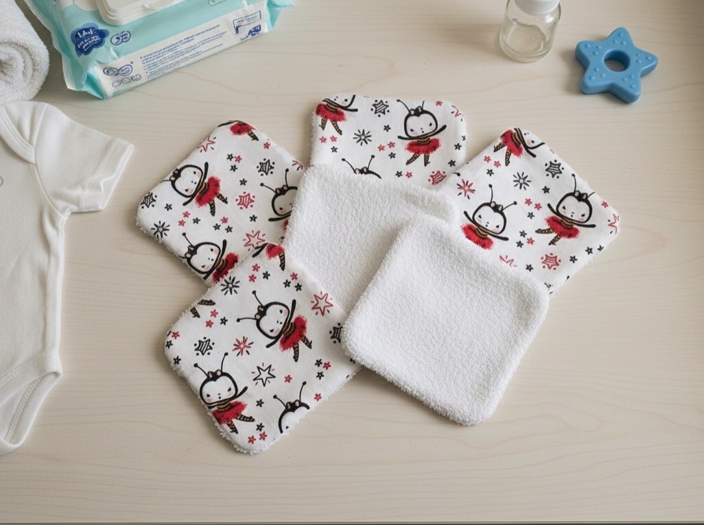 Un peu de douceur pour le change de bébé avec ce lot de 9 lingettes lavables