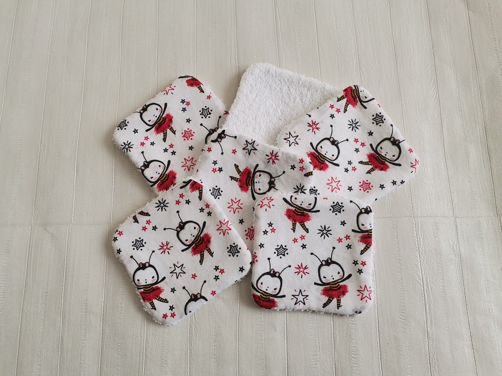 Une face coton certifié Oeko-Tex motifs abeilles en tutu et l'autre face en tissu éponge de couleur blanche