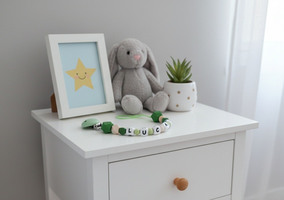 Pour éviter tout risque de strangulation, attachez plutôt la pince aux vêtement du bébé !