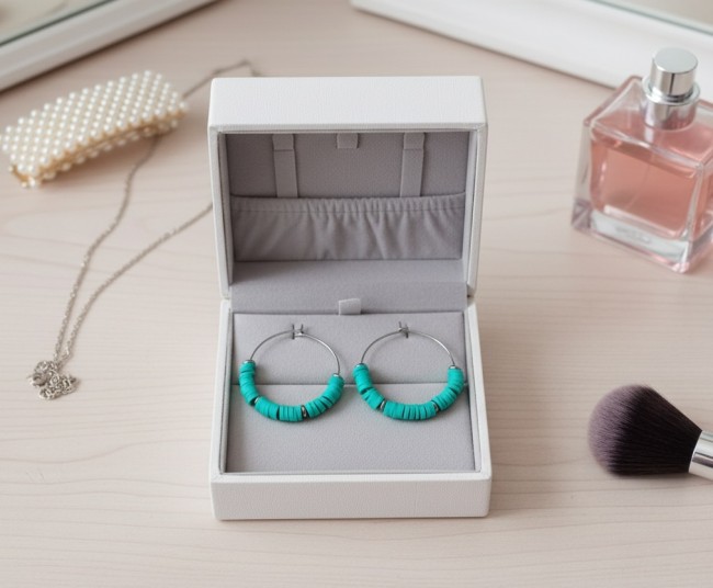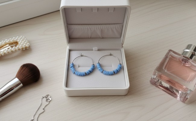 kit boucles d'oreilles créoles et perles Heishi très facile à réaliser, ne nécessite aucune pince