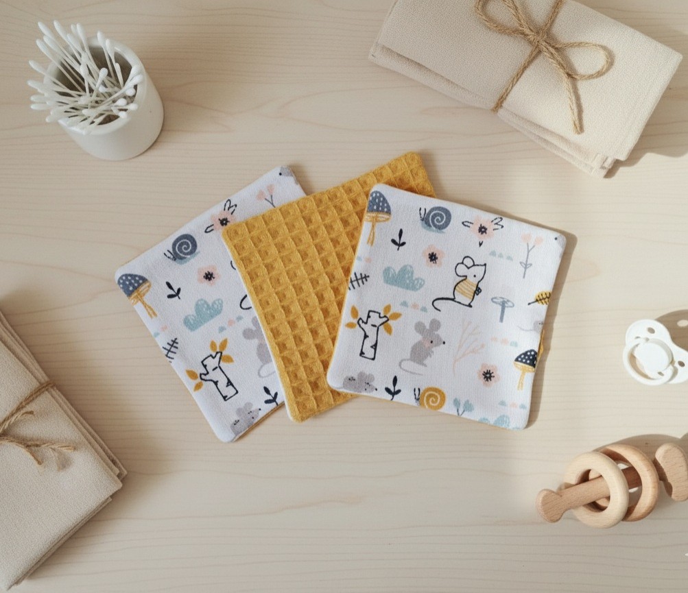 Un peu de douceur pour le change de bébé avec ce lot de 6 lingettes lavables