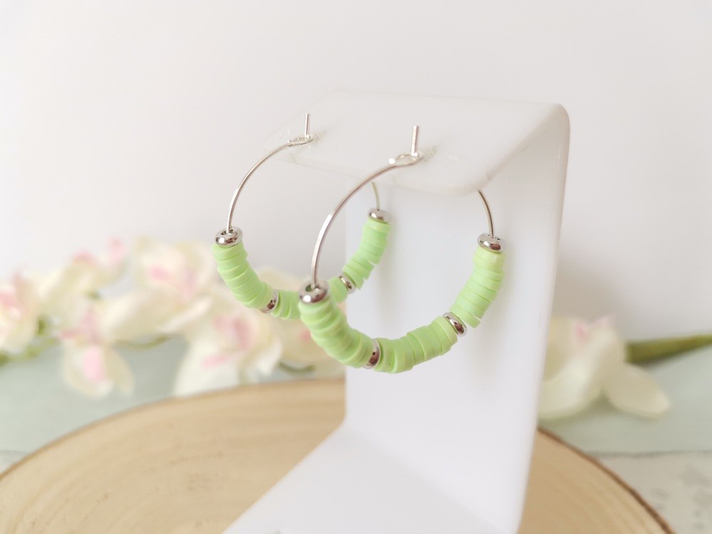 kit boucles d'oreilles créoles et perles Heishi très facile à réaliser, ne nécessite aucune pince