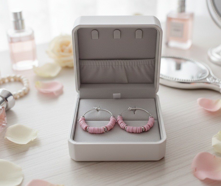 kit boucles d'oreilles créoles et perles Heishi très facile à réaliser, ne nécessite aucune pince