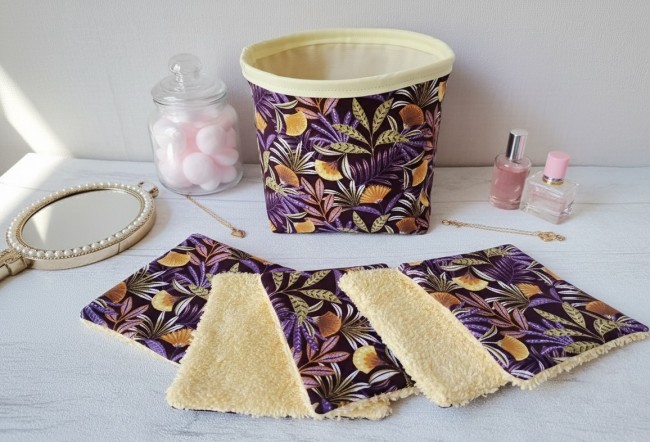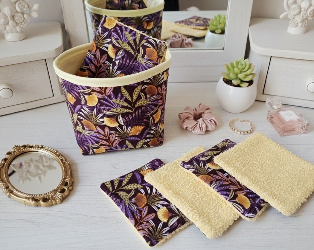 Ensemble d'un petit panier et ses 12 lingettes démaquillantes assorties