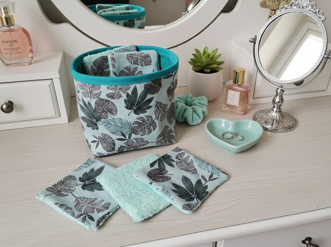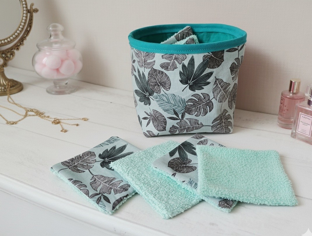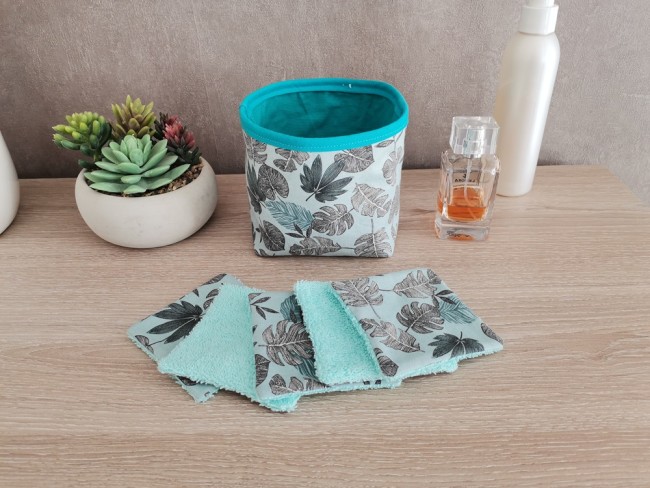 Ensemble d'un petit panier et ses 12 lingettes démaquillantes assorties