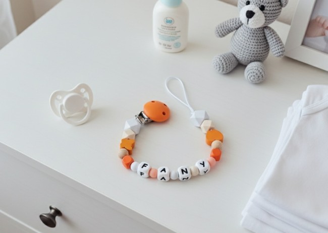 Pour éviter tout risque de strangulation, attachez plutôt la pince aux vêtement du bébé !