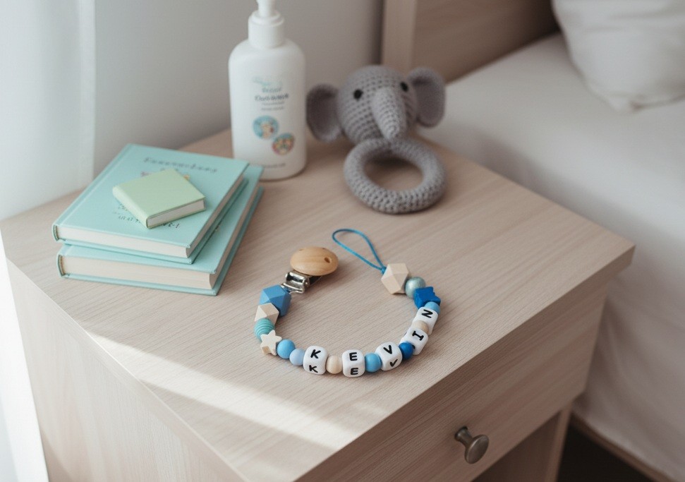 Pour éviter tout risque de strangulation, attachez plutôt la pince aux vêtement du bébé !