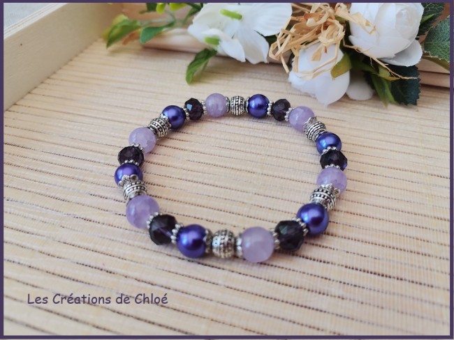Bracelet perles en verre lilas et violet et apprêts argent mat