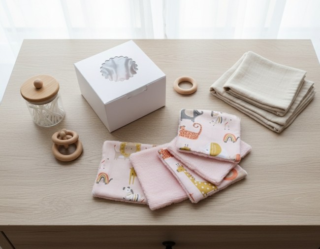 Un peu de douceur pour le change de bébé avec ce lot de 6 lingettes lavables