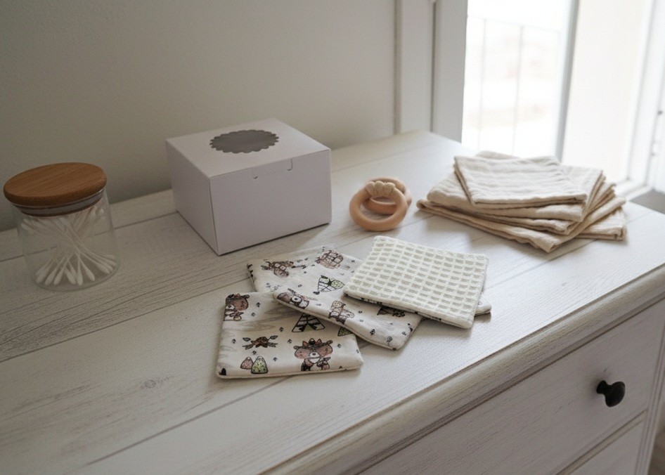 Un peu de douceur pour le change de bébé avec cette boite de 14 lingettes lavables