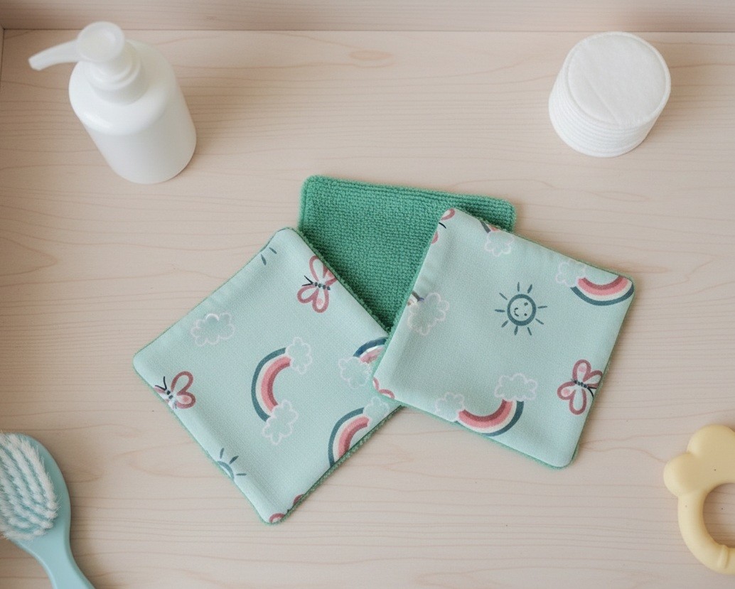 Un peu de douceur pour le change de bébé avec ce lot de 7 lingettes lavables