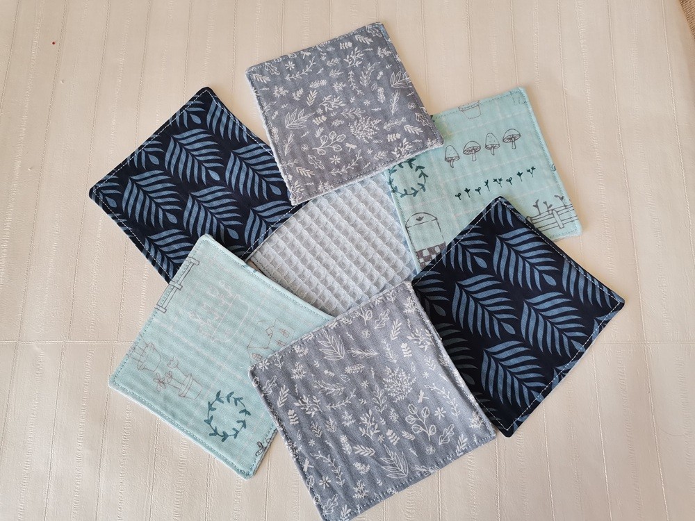 Lot de 12 lingettes démaquillantes pour femmes ton bleu avec 3 motifs différents