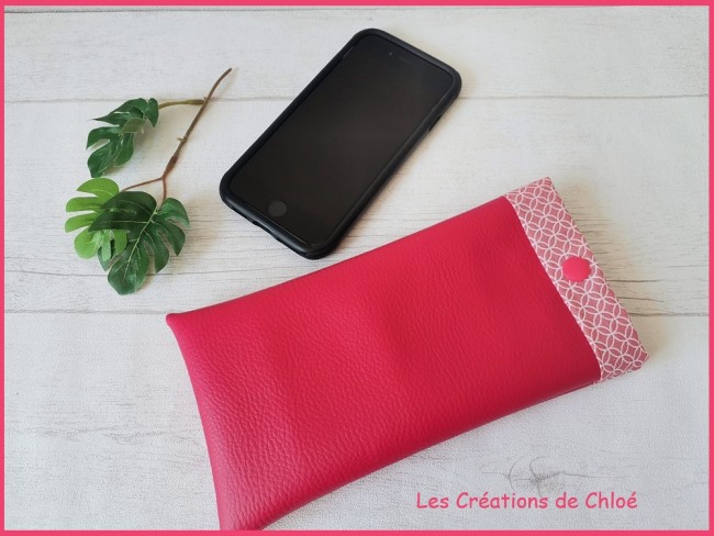 Cet étui pour téléphone portable est confectionné avec un tissu simili cuir, il est entièrement doublé avec un tissu coton certifié Oeko-Tex pour plus d'épaisseur afin de protéger votre portable, il se ferme avec un bouton pression.