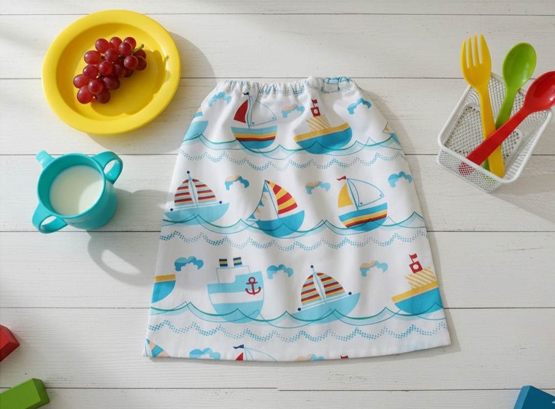 Serviette de table, serviette de cantine élastique doublée pour enfant / motif bateaux
