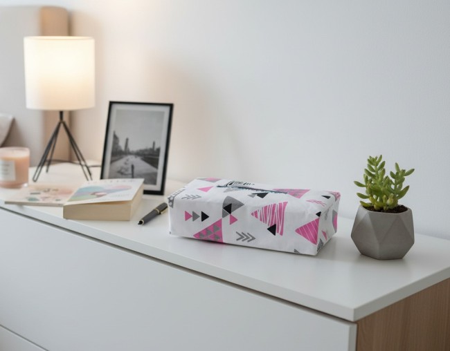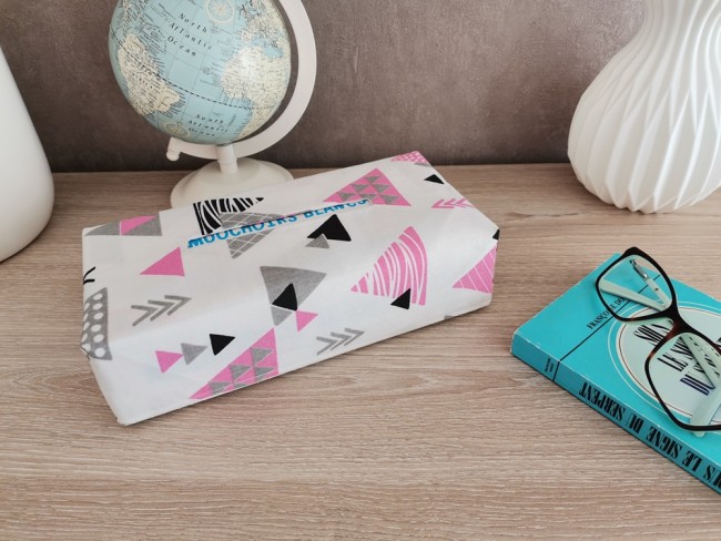 Housse pour boite à mouchoirs blanche imprimé triangles
