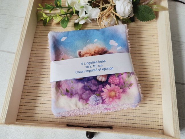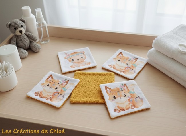 Un peu de douceur pour le change de bébé avec ce lot de 4 lingettes lavables