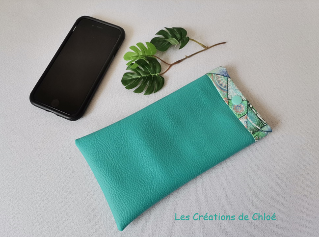 Cet étui pour téléphone portable est confectionné avec un tissu simili cuir, il est entièrement doublé avec un tissu coton certifié Oeko-Tex pour plus d'épaisseur afin de protéger votre portable, il se ferme avec un bouton pression.