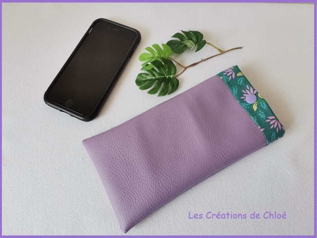 Etui simili cuir lilas et coton pour téléphone portable - LIQUIDATION STOCK