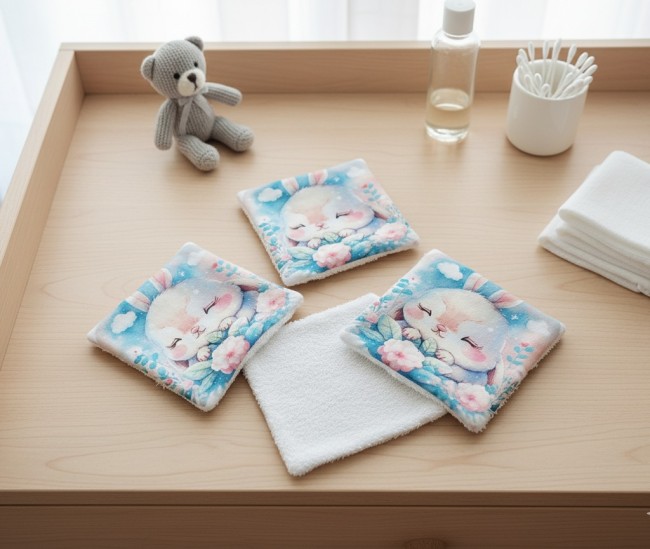 Un peu de douceur pour le change de bébé avec ce lot de 4 lingettes lavables