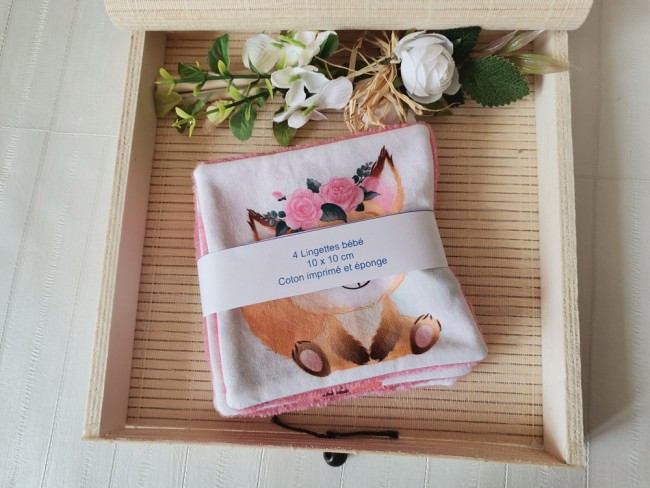 Un peu de douceur pour le change de bébé avec ce lot de 4 lingettes lavables
