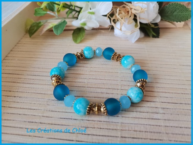 5 perles en verre givré bleu10 mm