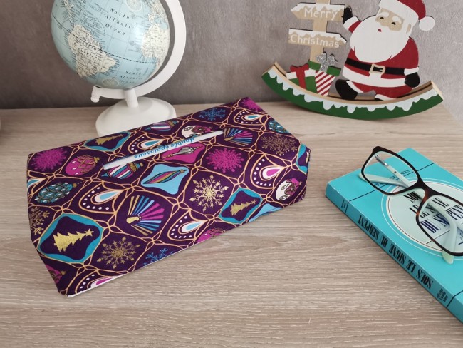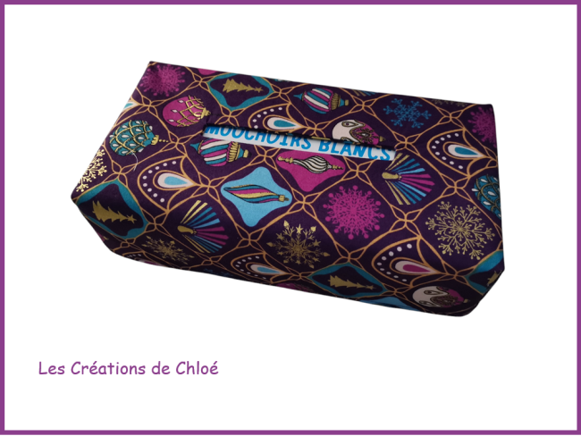 Housse pour boite à mouchoirs violet et doré