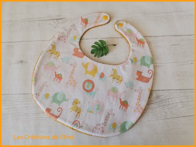 Bavoir bébé coton blanc et motifs animaux de la jungle