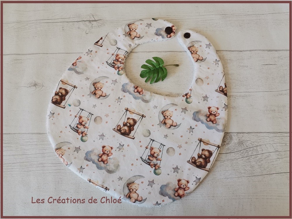 Bavoir bébé coton blanc et motifs ours balançoire
