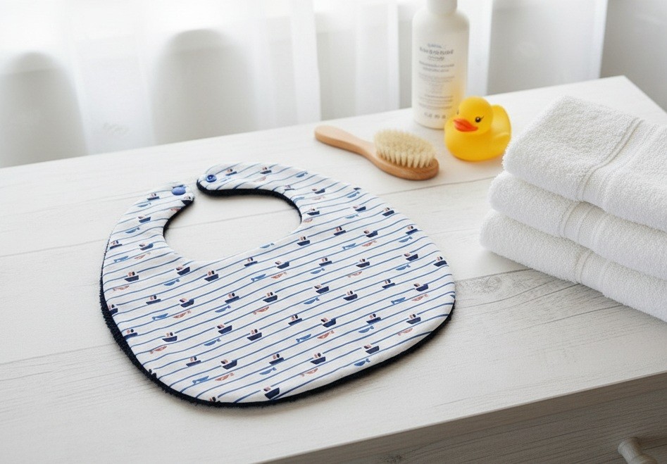 Petit bavoir idéal pour les premiers repas de bébé de 0 à 12 mois.