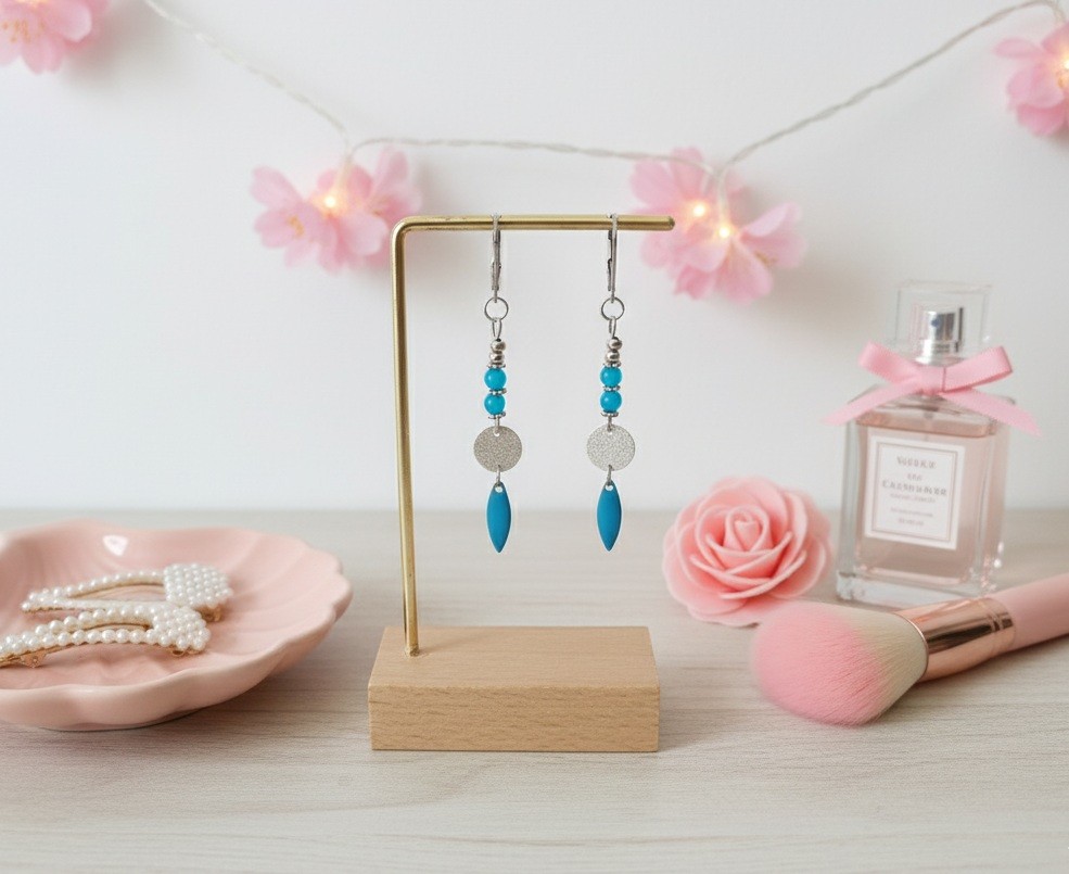 (les dormeuses, tiges et anneaux sont en acier inoxydable)